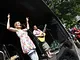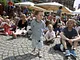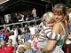 Vagtskiftet ved Marselisborg Slot skærtorsdag kl. 12 tiltrak mange fremmødte, mens politiets indsatsleder undervejs tog sig tid til at besvare spørgsmål fra en nysgerrig dreng.