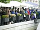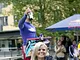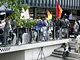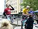 Vagtskiftet ved Marselisborg Slot skærtorsdag kl. 12 tiltrak mange fremmødte, mens politiets indsatsleder undervejs tog sig tid til at besvare spørgsmål fra en nysgerrig dreng.