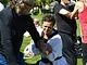 Vagtskiftet ved Marselisborg Slot skærtorsdag kl. 12 tiltrak mange fremmødte, mens politiets indsatsleder undervejs tog sig tid til at besvare spørgsmål fra en nysgerrig dreng.