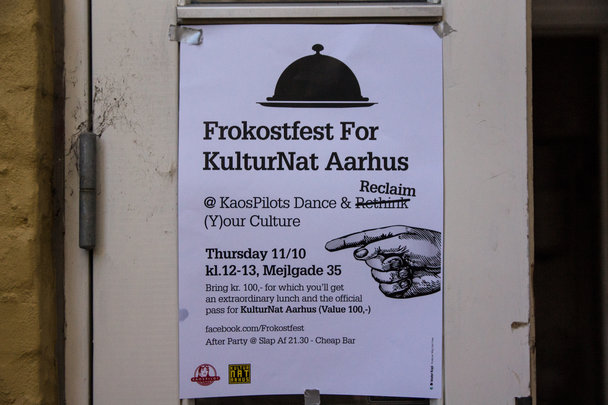 Kaospiloterne inviterede til mad, livemusik og et kulturnatspas for 100,- ....Der var gang i den med dansende giraf, tiger og gorilla i Mejlgade for at trække folk til...