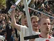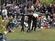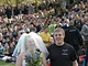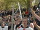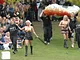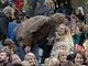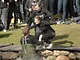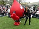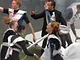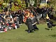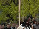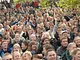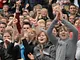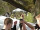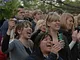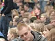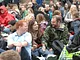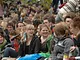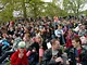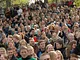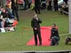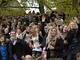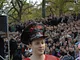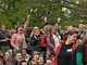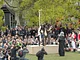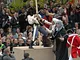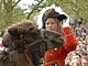 Vagtskiftet ved Marselisborg Slot skærtorsdag kl. 12 tiltrak mange fremmødte, mens politiets indsatsleder undervejs tog sig tid til at besvare spørgsmål fra en nysgerrig dreng.