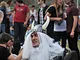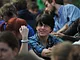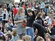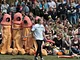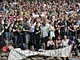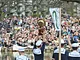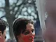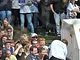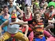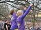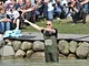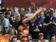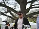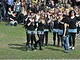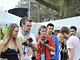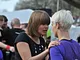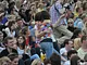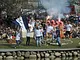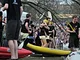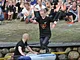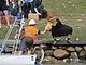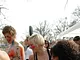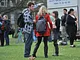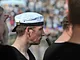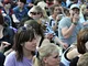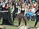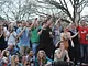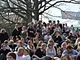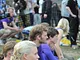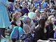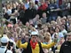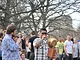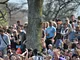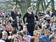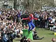 Vagtskiftet ved Marselisborg Slot skærtorsdag kl. 12 tiltrak mange fremmødte, mens politiets indsatsleder undervejs tog sig tid til at besvare spørgsmål fra en nysgerrig dreng.