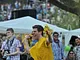 Igen i år var universitetsparken fyldt godt op med festglade studerende, som trodsede det ustadige vejr. Der blev, ud over den sædvanlige festlige stemning, budt på både sol, regn, hagl og slud. Men det betyder mindre når humøret er højt.