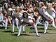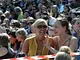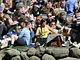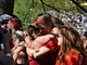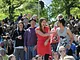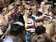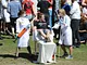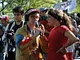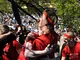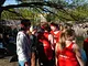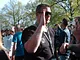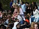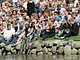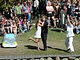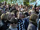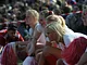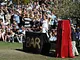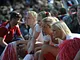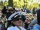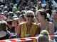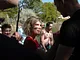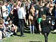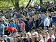 Vagtskiftet ved Marselisborg Slot skærtorsdag kl. 12 tiltrak mange fremmødte, mens politiets indsatsleder undervejs tog sig tid til at besvare spørgsmål fra en nysgerrig dreng.