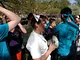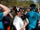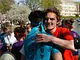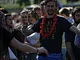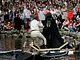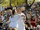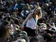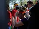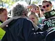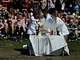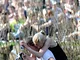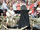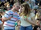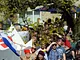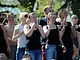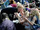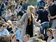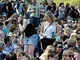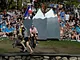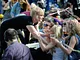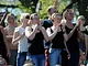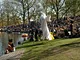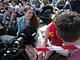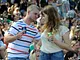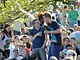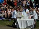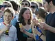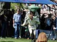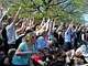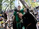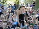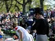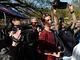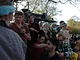 Vagtskiftet ved Marselisborg Slot skærtorsdag kl. 12 tiltrak mange fremmødte, mens politiets indsatsleder undervejs tog sig tid til at besvare spørgsmål fra en nysgerrig dreng.