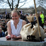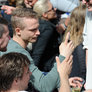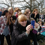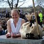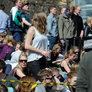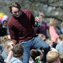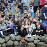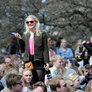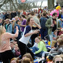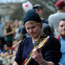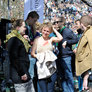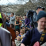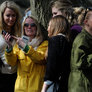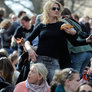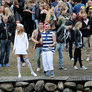 Vagtskiftet ved Marselisborg Slot skærtorsdag kl. 12 tiltrak mange fremmødte, mens politiets indsatsleder undervejs tog sig tid til at besvare spørgsmål fra en nysgerrig dreng.
