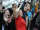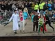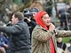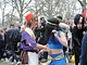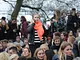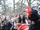 Vagtskiftet ved Marselisborg Slot skærtorsdag kl. 12 tiltrak mange fremmødte, mens politiets indsatsleder undervejs tog sig tid til at besvare spørgsmål fra en nysgerrig dreng.