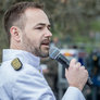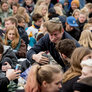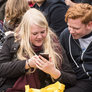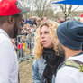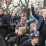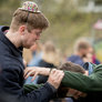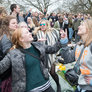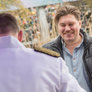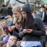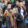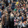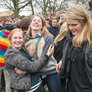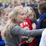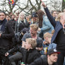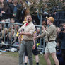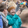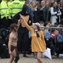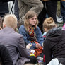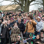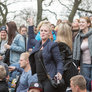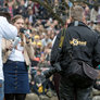 Vagtskiftet ved Marselisborg Slot skærtorsdag kl. 12 tiltrak mange fremmødte, mens politiets indsatsleder undervejs tog sig tid til at besvare spørgsmål fra en nysgerrig dreng.