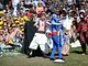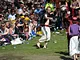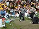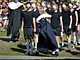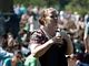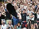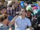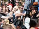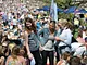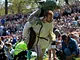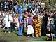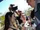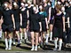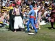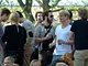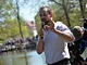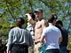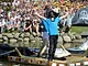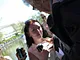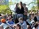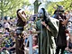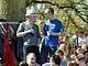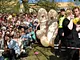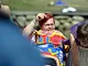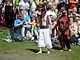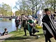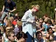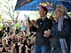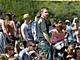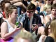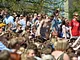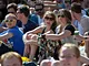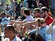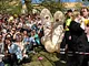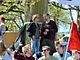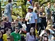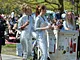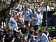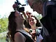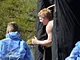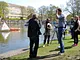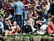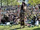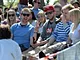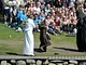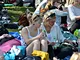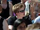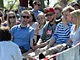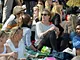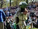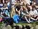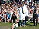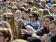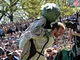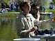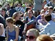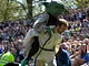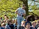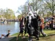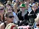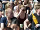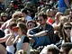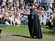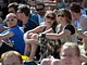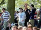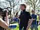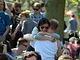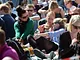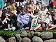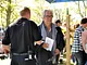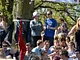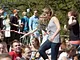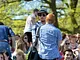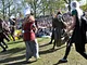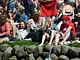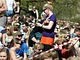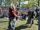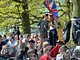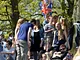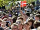 Vagtskiftet ved Marselisborg Slot skærtorsdag kl. 12 tiltrak mange fremmødte, mens politiets indsatsleder undervejs tog sig tid til at besvare spørgsmål fra en nysgerrig dreng.