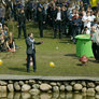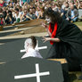 Vagtskiftet ved Marselisborg Slot skærtorsdag kl. 12 tiltrak mange fremmødte, mens politiets indsatsleder undervejs tog sig tid til at besvare spørgsmål fra en nysgerrig dreng.