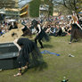 Igen i år var universitetsparken fyldt godt op med festglade studerende, som trodsede det ustadige vejr. Der blev, ud over den sædvanlige festlige stemning, budt på både sol, regn, hagl og slud. Men det betyder mindre når humøret er højt.