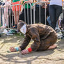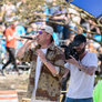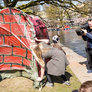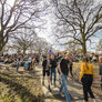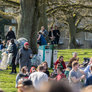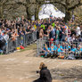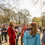 Vagtskiftet ved Marselisborg Slot skærtorsdag kl. 12 tiltrak mange fremmødte, mens politiets indsatsleder undervejs tog sig tid til at besvare spørgsmål fra en nysgerrig dreng.