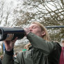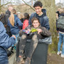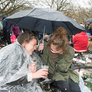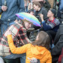 Vagtskiftet ved Marselisborg Slot skærtorsdag kl. 12 tiltrak mange fremmødte, mens politiets indsatsleder undervejs tog sig tid til at besvare spørgsmål fra en nysgerrig dreng.