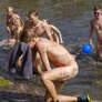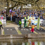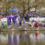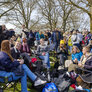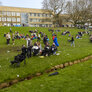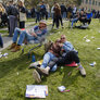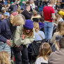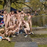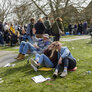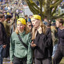 feststemte universitetsstuderene samles i universitetsparken til årets Kapsejlads.