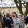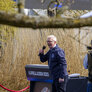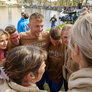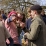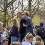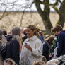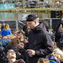 Vagtskiftet ved Marselisborg Slot skærtorsdag kl. 12 tiltrak mange fremmødte, mens politiets indsatsleder undervejs tog sig tid til at besvare spørgsmål fra en nysgerrig dreng.