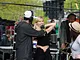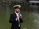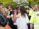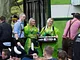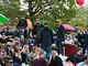 Vagtskiftet ved Marselisborg Slot skærtorsdag kl. 12 tiltrak mange fremmødte, mens politiets indsatsleder undervejs tog sig tid til at besvare spørgsmål fra en nysgerrig dreng.