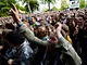 Vagtskiftet ved Marselisborg Slot skærtorsdag kl. 12 tiltrak mange fremmødte, mens politiets indsatsleder undervejs tog sig tid til at besvare spørgsmål fra en nysgerrig dreng.