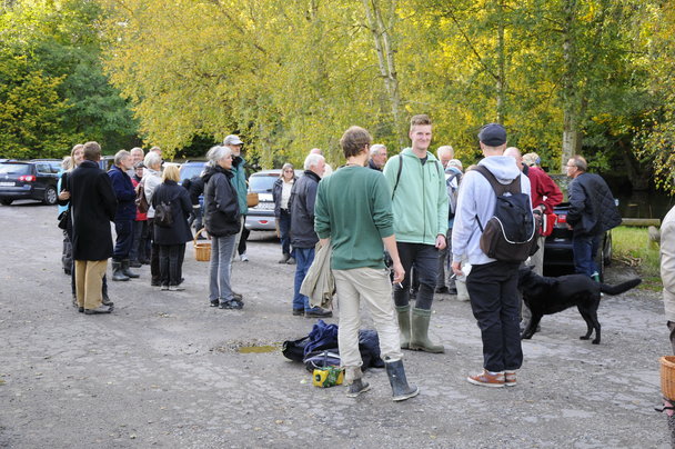 Små 50 svampeinteresserede fik undervisning og underholdning for alle pengene (50,00 kr) da Torben Gang Rasmussen i aften ledte os rundt mellem skovens mangeartede svampe.