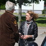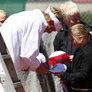Vagtskiftet ved Marselisborg Slot skærtorsdag kl. 12 tiltrak mange fremmødte, mens politiets indsatsleder undervejs tog sig tid til at besvare spørgsmål fra en nysgerrig dreng.