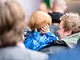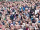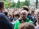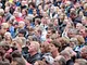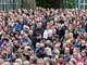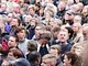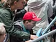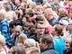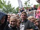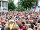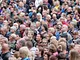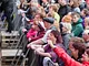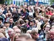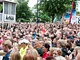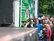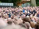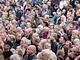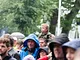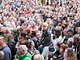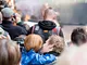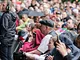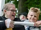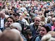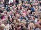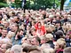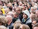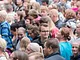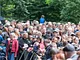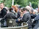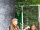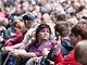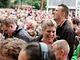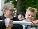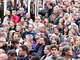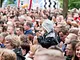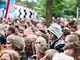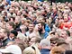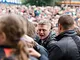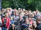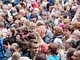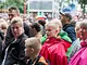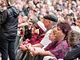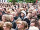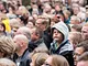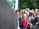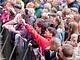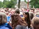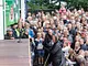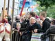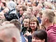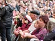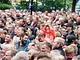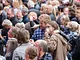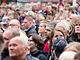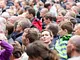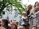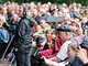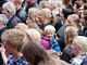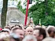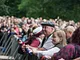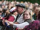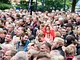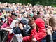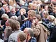 Vagtskiftet ved Marselisborg Slot skærtorsdag kl. 12 tiltrak mange fremmødte, mens politiets indsatsleder undervejs tog sig tid til at besvare spørgsmål fra en nysgerrig dreng.