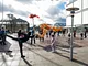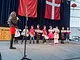 Vagtskiftet ved Marselisborg Slot skærtorsdag kl. 12 tiltrak mange fremmødte, mens politiets indsatsleder undervejs tog sig tid til at besvare spørgsmål fra en nysgerrig dreng.