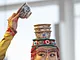 Vagtskiftet ved Marselisborg Slot skærtorsdag kl. 12 tiltrak mange fremmødte, mens politiets indsatsleder undervejs tog sig tid til at besvare spørgsmål fra en nysgerrig dreng.