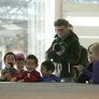 Vagtskiftet ved Marselisborg Slot skærtorsdag kl. 12 tiltrak mange fremmødte, mens politiets indsatsleder undervejs tog sig tid til at besvare spørgsmål fra en nysgerrig dreng.