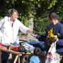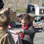 Vagtskiftet ved Marselisborg Slot skærtorsdag kl. 12 tiltrak mange fremmødte, mens politiets indsatsleder undervejs tog sig tid til at besvare spørgsmål fra en nysgerrig dreng.