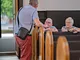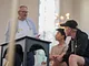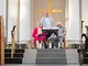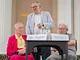 Vagtskiftet ved Marselisborg Slot skærtorsdag kl. 12 tiltrak mange fremmødte, mens politiets indsatsleder undervejs tog sig tid til at besvare spørgsmål fra en nysgerrig dreng.