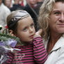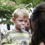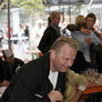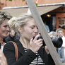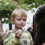 Vagtskiftet ved Marselisborg Slot skærtorsdag kl. 12 tiltrak mange fremmødte, mens politiets indsatsleder undervejs tog sig tid til at besvare spørgsmål fra en nysgerrig dreng.