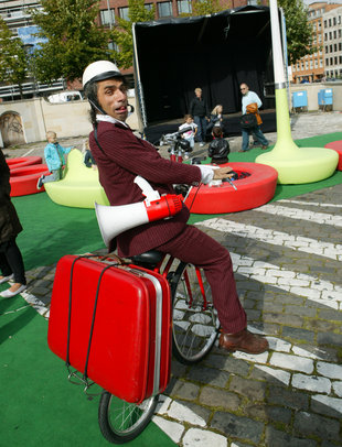 Klovnen BUNO optræder på Store Torv