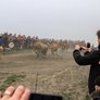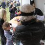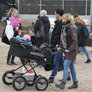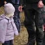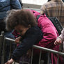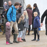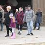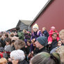 Vagtskiftet ved Marselisborg Slot skærtorsdag kl. 12 tiltrak mange fremmødte, mens politiets indsatsleder undervejs tog sig tid til at besvare spørgsmål fra en nysgerrig dreng.