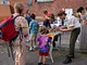 Vagtskiftet ved Marselisborg Slot skærtorsdag kl. 12 tiltrak mange fremmødte, mens politiets indsatsleder undervejs tog sig tid til at besvare spørgsmål fra en nysgerrig dreng.