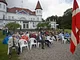 Vagtskiftet ved Marselisborg Slot skærtorsdag kl. 12 tiltrak mange fremmødte, mens politiets indsatsleder undervejs tog sig tid til at besvare spørgsmål fra en nysgerrig dreng.