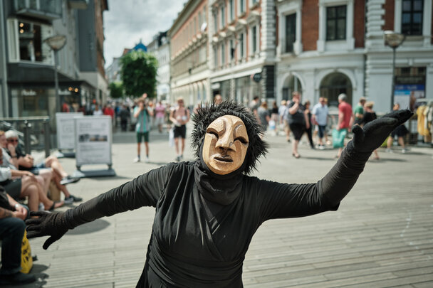 Teateret Kosmos gik gennem byen med et optog. Et samarbejde mellem Fo-Aarhus og ReThinkers