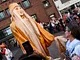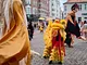 Vagtskiftet ved Marselisborg Slot skærtorsdag kl. 12 tiltrak mange fremmødte, mens politiets indsatsleder undervejs tog sig tid til at besvare spørgsmål fra en nysgerrig dreng.