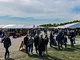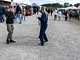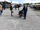 Vagtskiftet ved Marselisborg Slot skærtorsdag kl. 12 tiltrak mange fremmødte, mens politiets indsatsleder undervejs tog sig tid til at besvare spørgsmål fra en nysgerrig dreng.