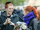Vagtskiftet ved Marselisborg Slot skærtorsdag kl. 12 tiltrak mange fremmødte, mens politiets indsatsleder undervejs tog sig tid til at besvare spørgsmål fra en nysgerrig dreng.