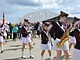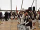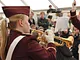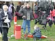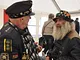 Vagtskiftet ved Marselisborg Slot skærtorsdag kl. 12 tiltrak mange fremmødte, mens politiets indsatsleder undervejs tog sig tid til at besvare spørgsmål fra en nysgerrig dreng.