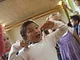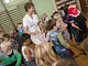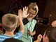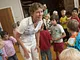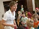 Vagtskiftet ved Marselisborg Slot skærtorsdag kl. 12 tiltrak mange fremmødte, mens politiets indsatsleder undervejs tog sig tid til at besvare spørgsmål fra en nysgerrig dreng.