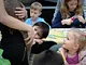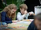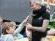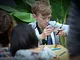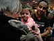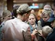 Vagtskiftet ved Marselisborg Slot skærtorsdag kl. 12 tiltrak mange fremmødte, mens politiets indsatsleder undervejs tog sig tid til at besvare spørgsmål fra en nysgerrig dreng.