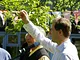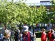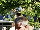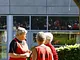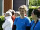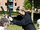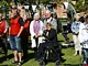 Vagtskiftet ved Marselisborg Slot skærtorsdag kl. 12 tiltrak mange fremmødte, mens politiets indsatsleder undervejs tog sig tid til at besvare spørgsmål fra en nysgerrig dreng.