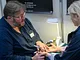 Vagtskiftet ved Marselisborg Slot skærtorsdag kl. 12 tiltrak mange fremmødte, mens politiets indsatsleder undervejs tog sig tid til at besvare spørgsmål fra en nysgerrig dreng.