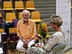 Vagtskiftet ved Marselisborg Slot skærtorsdag kl. 12 tiltrak mange fremmødte, mens politiets indsatsleder undervejs tog sig tid til at besvare spørgsmål fra en nysgerrig dreng.