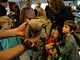 Vagtskiftet ved Marselisborg Slot skærtorsdag kl. 12 tiltrak mange fremmødte, mens politiets indsatsleder undervejs tog sig tid til at besvare spørgsmål fra en nysgerrig dreng.