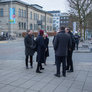 Vagtskiftet ved Marselisborg Slot skærtorsdag kl. 12 tiltrak mange fremmødte, mens politiets indsatsleder undervejs tog sig tid til at besvare spørgsmål fra en nysgerrig dreng.