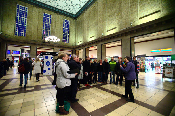 I Banegårdens forhal holdt det 8-stemmige, rytmiske kor Off Beat koncert.