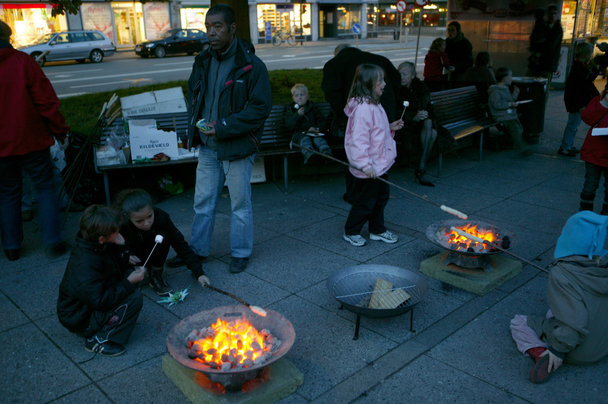 Spejderne havde slået lejr foran Rådhuset. Der blev smedet, stegt skumfiduser og der var musik på scenen.