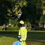 Vagtskiftet ved Marselisborg Slot skærtorsdag kl. 12 tiltrak mange fremmødte, mens politiets indsatsleder undervejs tog sig tid til at besvare spørgsmål fra en nysgerrig dreng.