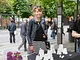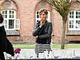 Vagtskiftet ved Marselisborg Slot skærtorsdag kl. 12 tiltrak mange fremmødte, mens politiets indsatsleder undervejs tog sig tid til at besvare spørgsmål fra en nysgerrig dreng.
